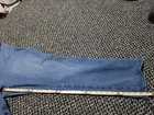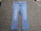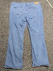 These are in good used condition. The waste is 20 in in a measurement and with the elastic I could stretch it to 23in quite easily. There is a tear and a Levi logo on the back which you can see in the photos. Otherwise these jeans are in great condition. Lou's ask if you have any questions. The measurements are in the photos. Women's Levi's 415 Classic Boot jeans in blue, size 40 with a 29-inch inseam. They feature an elastic waist for comfort and a zip closure. Made of a polyester and cotton blend, they have a solid pattern with button accents and the Levi's logo. This classic fit style has a red tab detail and is suitable for regular sizing.