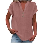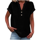Women's Fashion Casual Solid Colour V-Neck Short Sleeve Button Down Shirt T-Shirt Top Features : 1.Material: Made of high quality material, and suitable for everyday wear, made of soft fabric, polyester, light and comfortable, easy to dress up or take off, comfortable to wear all day long. 2. Occasion: This product is perfect for everyday, beach, outing, party, work, casual wear. It's so random you might some extra covers! This one is available in a variety of solid colors to suit your personal style. 3. It can be given to friends, family, yourself, etc., it is the best choice for gifts 4. Wash with cold water, the size will not change much, if you have any questions when choosing, welcome to consult 5. Different monitors will have a little color difference, please don't mind Product information: Seasons: Four Seasons Material: Polyester Gender: Female Occasion: Everyday, Casual Style: leisure Sleeve Length: short Sleeve Fit: fit Thickness: Standard Washing method: Hand wash in cold water, hang or dry You will get: 1 x Women's top Size Bust Shoulder Sleeve Length S 94cm/37.01'' 40cm/15.75'' 18cm/7.09'' 68cm/26.77'' M 98cm/38.58'' 41cm/16.14'' 18.5cm/7.28'' 69cm/27.17'' L 104cm/40.94'' 42.5cm/16.73'' 19cm/7.48'' 70cm/27.56'' XL 110cm/43.31'' 44cm/17.32'' 19.5cm/7.68'' 71cm/27.95'' XXL 116cm/45.67'' 45.5cm/17.91'' 20cm/7.87'' 72cm/28.35'' XXXL 122cm/48.03'' 47cm/18.50'' 20.5cm/8.07'' 73cm/28.74'' Size:S Bust:94cm/37.01'' Shoulder:40cm/15.75'' Sleeve:18cm/7.09'' Length:68cm/26.77'' Size:M Bust:98cm/38.58'' Shoulder:41cm/16.14'' Sleeve:18.5cm/7.28'' Length:69cm/27.17'' Size:L Bust:104cm/40.94'' Shoulder:42.5cm/16.73'' Sleeve:19cm/7.48'' Length:70cm/27.56'' Size:XL Bust:110cm/43.31'' Shoulder:44cm/17.32'' Sleeve:19.5cm/7.68'' Length:71cm/27.95'' Size:XXL Bust:116cm/45.67'' Shoulder:45.5cm/17.91'' Sleeve:20cm/7.87'' Length:72cm/28.35'' Size:XXXL Bust:122cm/48.03'' Shoulder:47cm/18.50'' Sleeve:20.5cm/8.07'' Length:73cm/28.74''