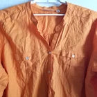 26/28 Linen Blend Tunic Top Shirt Blouse 3/4 Roll Tab Sleeve Button Front Orange very nice pre-owned condition, no tears holes stains, please see photos for further info approx measurements: underarm to underarm across chest--29" length, neckline to hem in back--29"