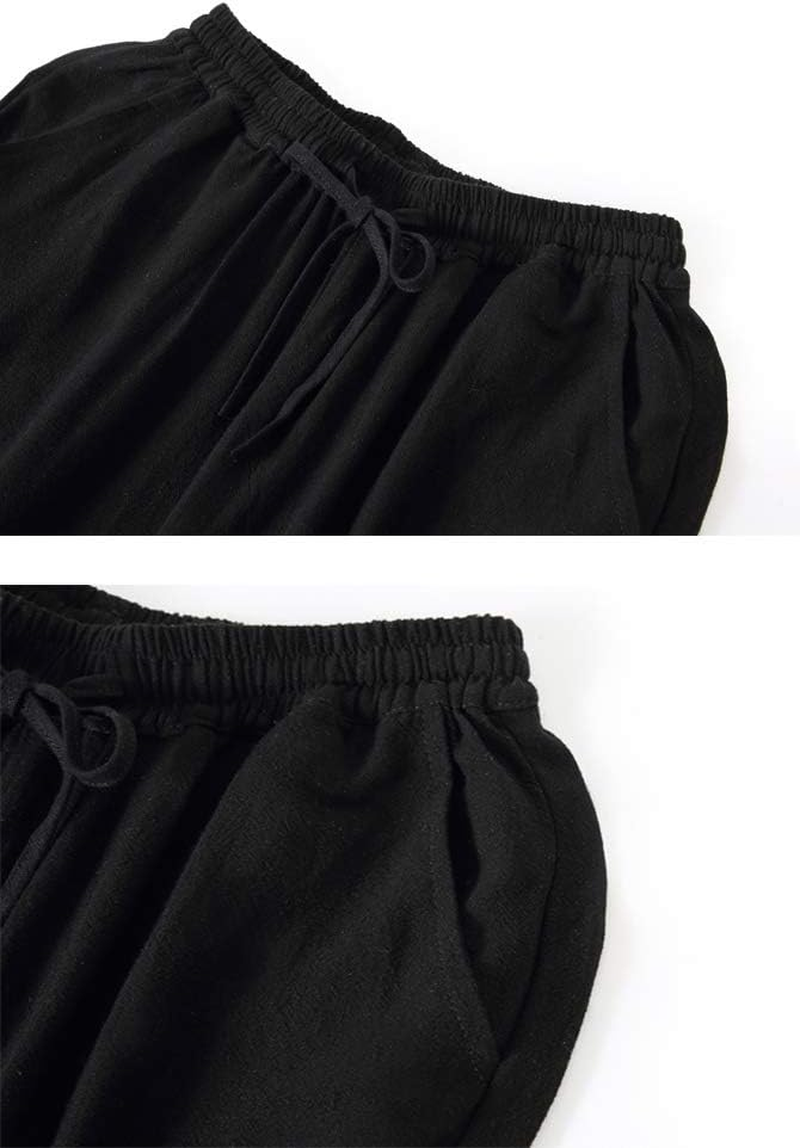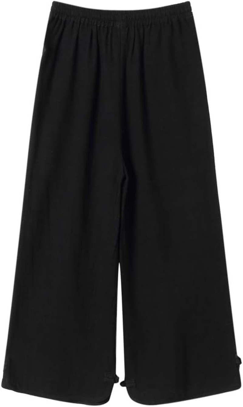 Women's Linen Wide Leg Pants with Drawstring Waist & Frog Button