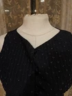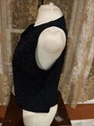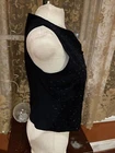 Liz Claiborne Collection Black Beaded Dress Evening Vest Button Front Sz 10 Beads are a Dark Blue Iridescent Subtle Stitched Black on Black Stripes Beads are in "V" and "Flower/Snowflake" Patterns Solid Black Back Measures 21" Armpit to Armpit, and 21" Shoulder Seam to Hem Thanks for Looking! I Do Combine Shipping!