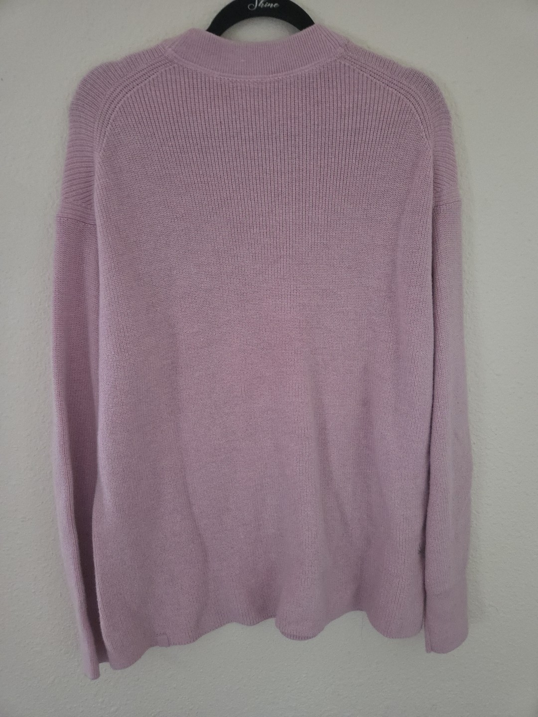 The product is a Women's Lululemon Merino Wool Blend Ribbed Crewneck Sweater in a light purple color, size 10. This pullover sweater features a solid pattern, long sleeves, and a crew neck neckline. Made from a wool blend material, it is suitable for travel, casual wear, and workwear occasions. With a logo accent, regular fit, and stretch and breathable features, this sweater is perfect for outdoor activities in the winter, fall, and spring seasons. The classic and city-themed sweater from the brand Lululemon is a versatile and stylish addition to any woman's wardrobe. Pit to pit 23 inches Full length 28 inches