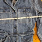 Kindly note: Items are not washed and may have scents (detergent or used clothing). Any stains, rips, or defects are clearly shown in the photos, and actual measurements are included there as well. Orders ship within 1–3 business days. If you have any questions or issues with your order, feel free to message me — I’m happy to help! This is a pre-owned Madewell denim jumpsuit in blue, size S. It features a collared neckline, long sleeves, and a full button-front closure. The jumpsuit has two chest pockets with button flaps and two large patch pockets on the hips. A matching denim belt is included, designed to tie at the waist. The legs are wide-cut, and the garment is made of 100% cotton. Visible measurements indicate a chest width of approximately 16 inches and an inseam of about 22 inches. The jumpsuit appears to be in good condition with no significant visible imperfections.
