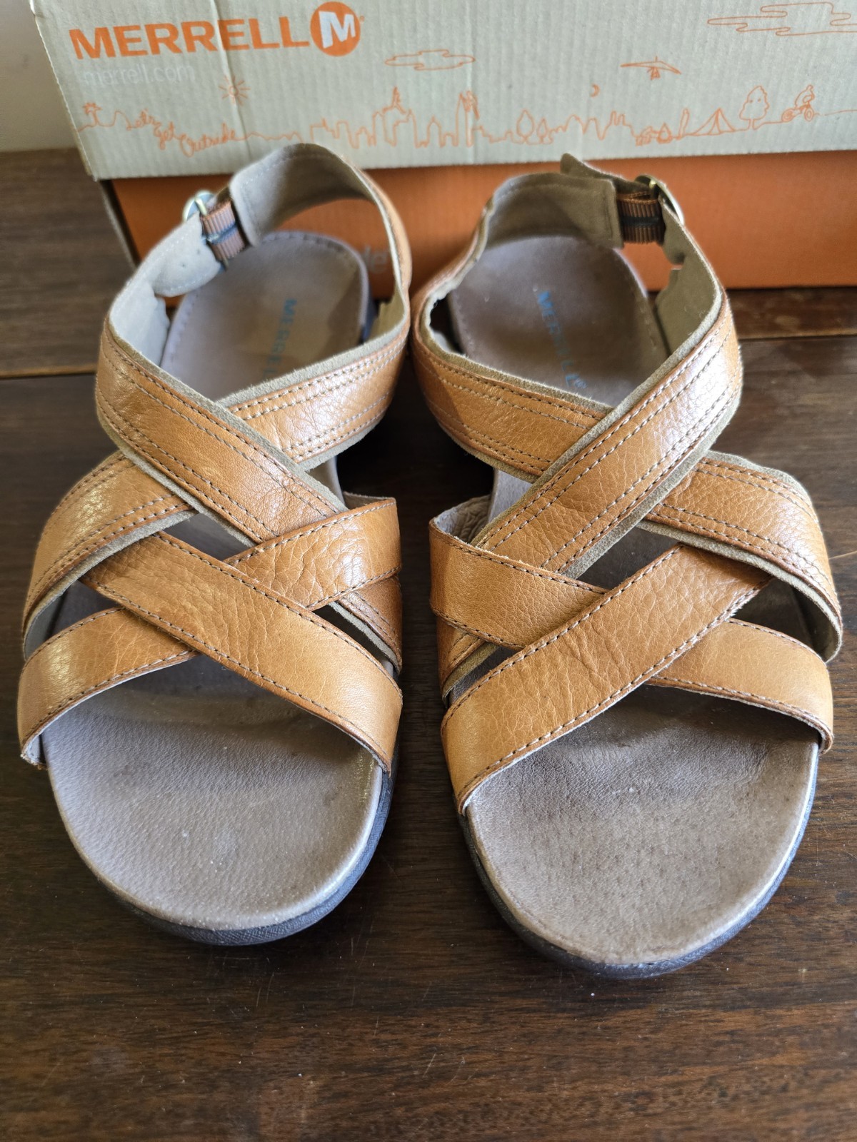 b.o.c. Born Concept Women's Brown Leather Wedge Slide Sandals Size 10 Comfort