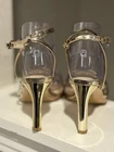 These Women's Metallic Gold Size 8 Strappy Stiletto Heels are a glamorous addition to any fashion-forward wardrobe. With a solid gold color and high stiletto heel, these shoes are perfect for a party or cocktail event. The strappy design and ankle strap add a touch of elegance, while the synthetic upper material ensures durability and comfort. Perfect for the summer and spring seasons, these stylish heels are sure to make a statement and turn heads wherever you go.
