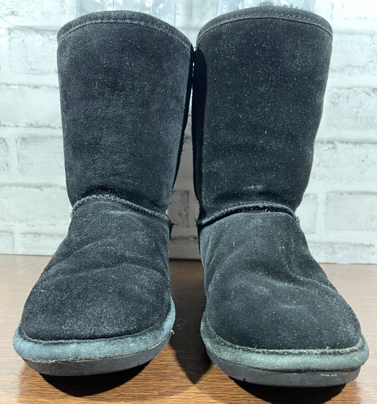 The Bearpaw Women's Mid Calf Suede Boots in Black are a stylish and functional choice for colder seasons. These snow boots feature a round toe shape with a flat heel, faux fur trim accents, and a logo detail. The boots are lined with sheepskin and insulated for warmth, making them suitable for winter and fall weather. The pull-on closure and mid-calf shaft style provide convenience and comfort, while the rubber outsole ensures durability for various occasions such as travel, casual wear, or workwear. Ideal for those looking for classic and cozy footwear. Good preowned condition with normal preowned wear and slight heel wear as pictured. Please see all photos. For clothing specifically, see photos for all measurements and/or any issues if applicable. Pay close attention to the measurements as the size of the garment may quite possibly be different than the actual measurement(s) due to washing, shrinkage, or stretching as these are used clothes. The size in the title is the size on the tag of the garment. See photos for measurements of actual measurements as they may differ. ALWAYS CHECK THE MEASUREMENTS IN THE PHOTOS. This will remove any questions on measurements as well as always cover the possibility of human error in the listing(s) in the case of a typo or oversight. All clothing and shoes have been washed/cleaned, and comes from a smoke free environment. If shoe trees appear in the photos, they are for photography purposes only to illustrate how the shoes look filled out, and are not included. I am available for questions. I accept or negotiate reasonable offers. Have an amazing day. Thank you.