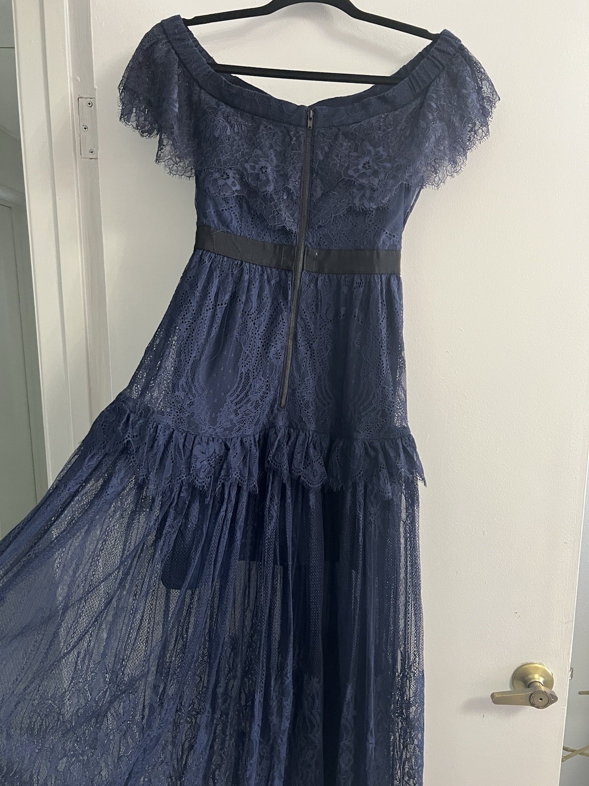 Este vestido fue un regalo que me trajeron de España y nunca me lo he puesto está nuevo pero sin la etiqueta solo que ahora ya no me sirve es bello y queda hermoso puesto .