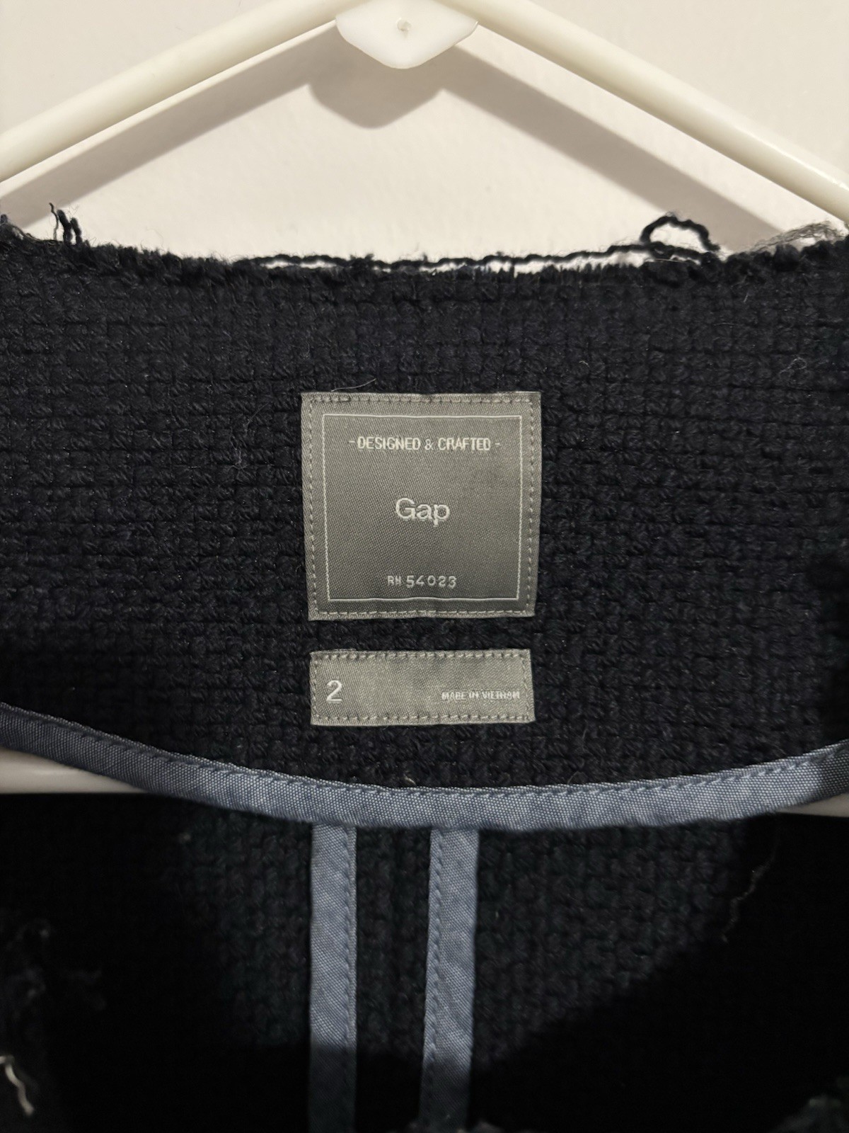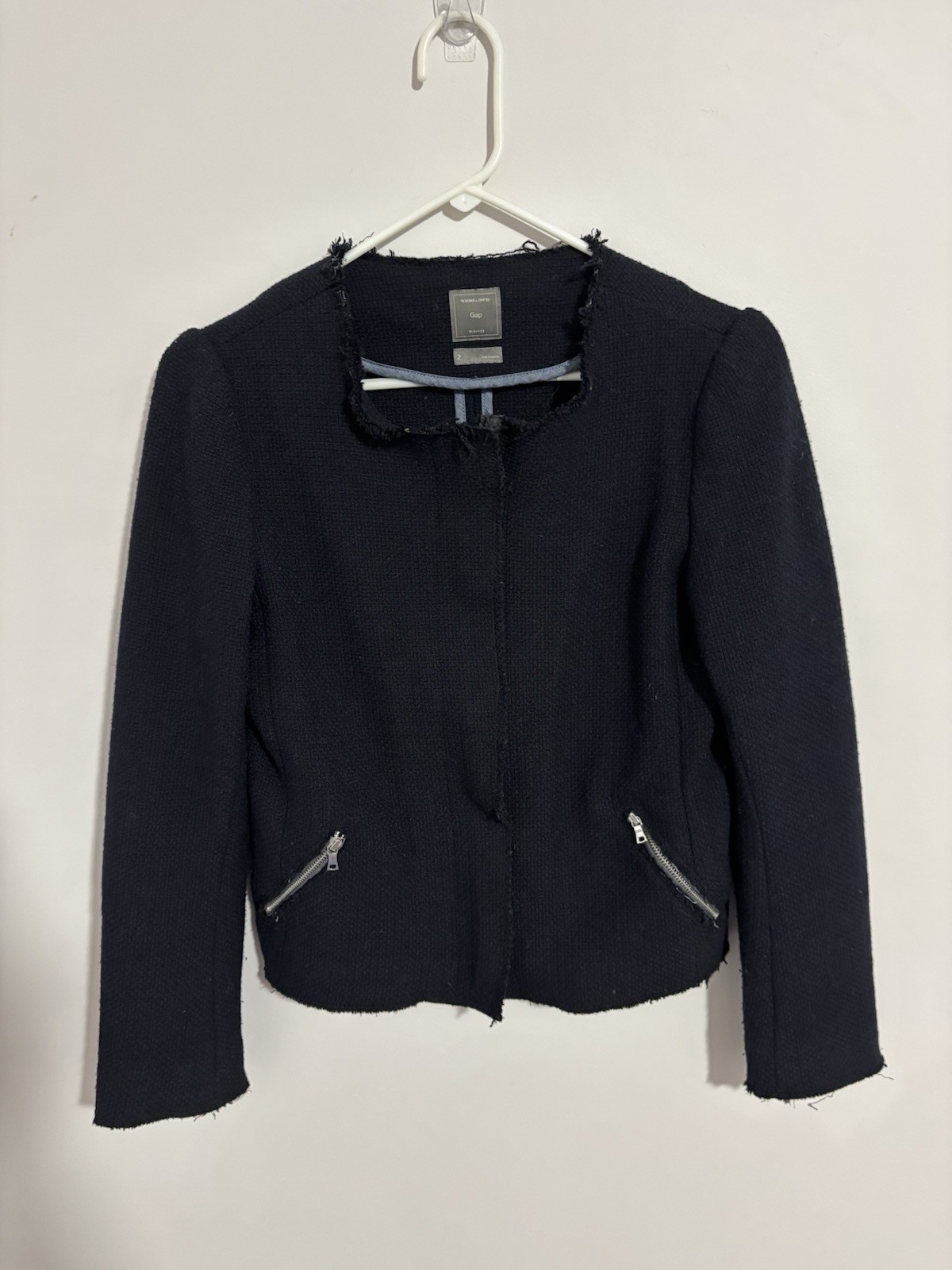 Women’s Navy Blue Tweed Distressed Blazer By Gap With Pockets Size 2