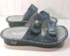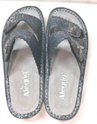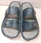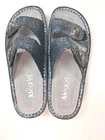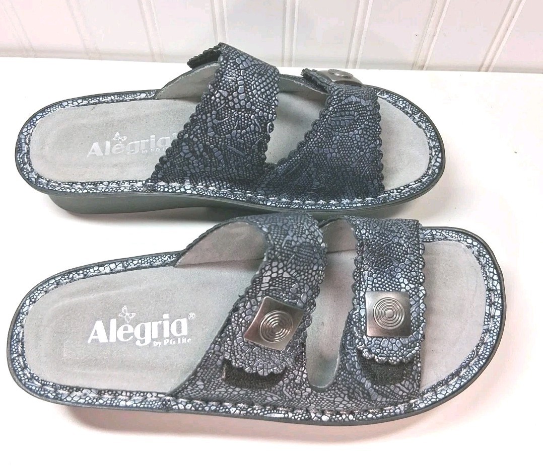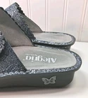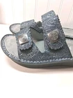 Beautiful, expensive style, sandals by Alegria only were tried on, never wore new with no tags, Beautiful Suede on the Bottom Gray, the color is a silverish bluish, really nice, great quality. Buckles on side and Butterfly's 38 USA sz 8