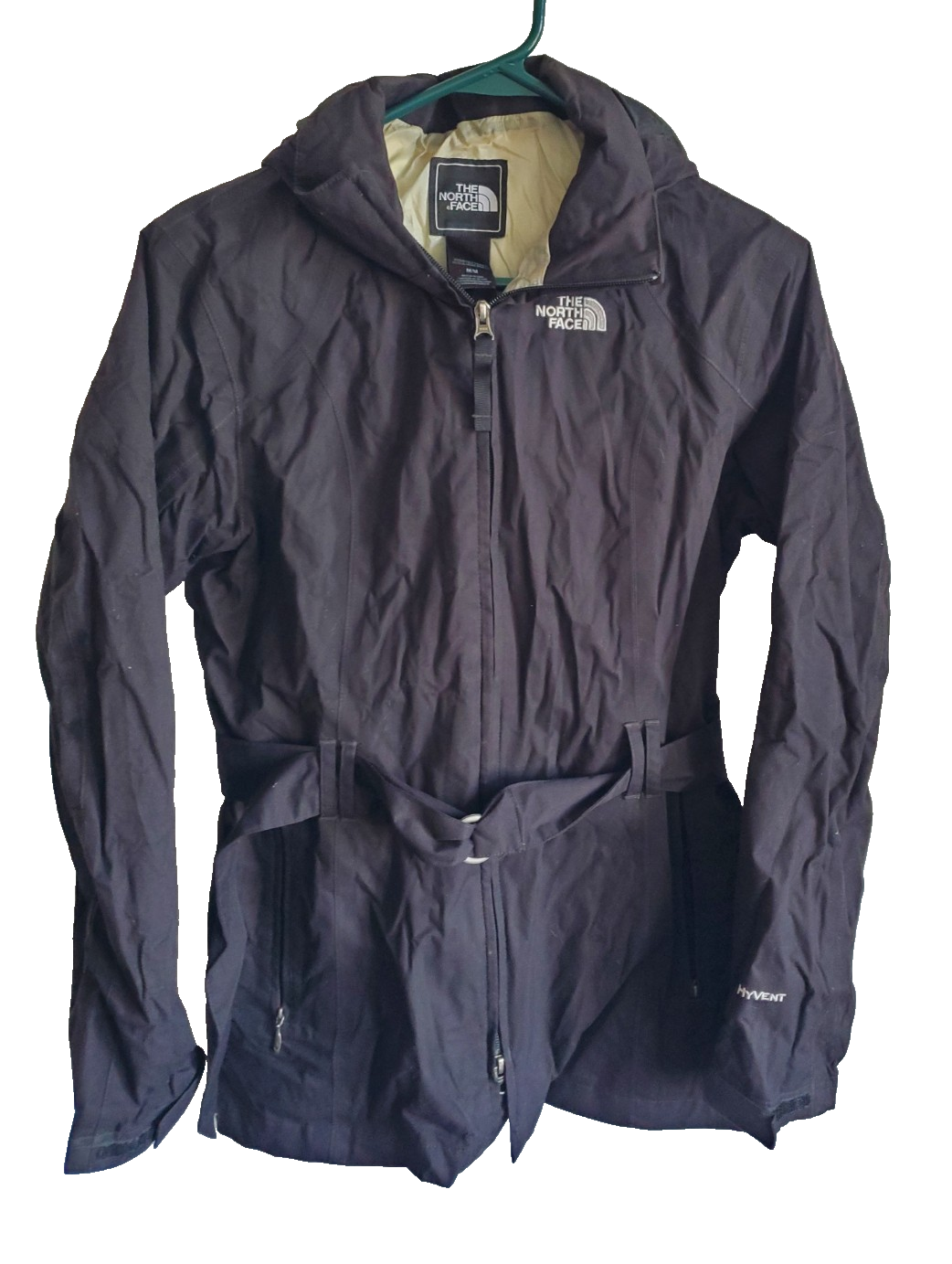 Embrace versatility with The North Face Hyvent Classic Rain Jacket, a quintessential addition to your outerwear collection. This women's medium-sized jacket, featuring a sleek black color, is crafted from durable polyester and is an ideal choice for a range of occasions, from casual outings to travel and even adding a layer of sophistication to your workwear ensemble. The jacket's design includes a practical zip closure, a comfortable polyester lining, and a stylish belted accent that enhances the silhouette. Its softshell fabric ensures a balance of durability and breathability, making it suitable for fall, spring, and winter seasons. Whether you're facing a drizzly day or a brisk evening breeze, this basic jacket style offers both protection and timeless fashion.