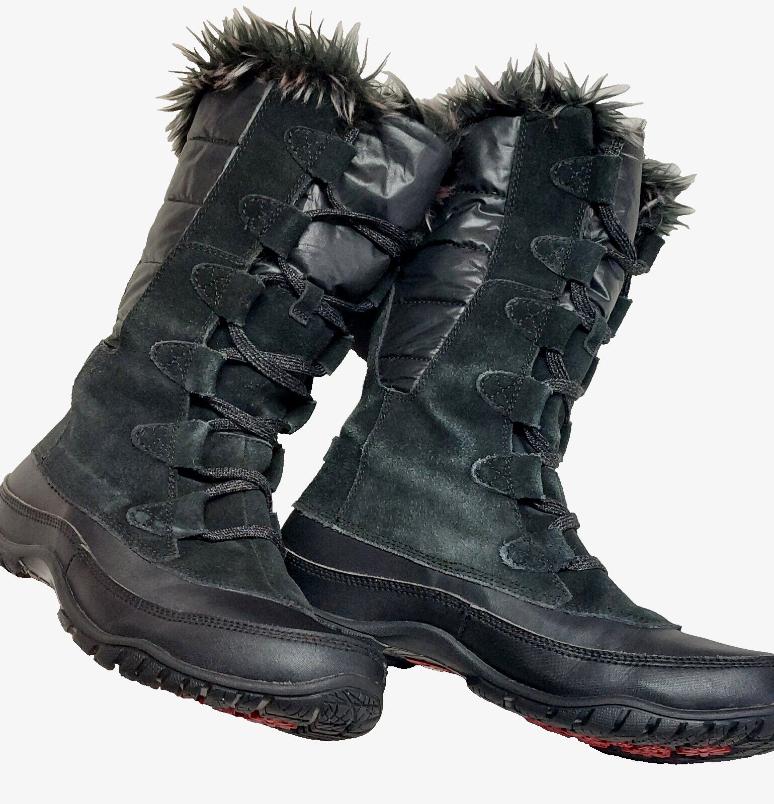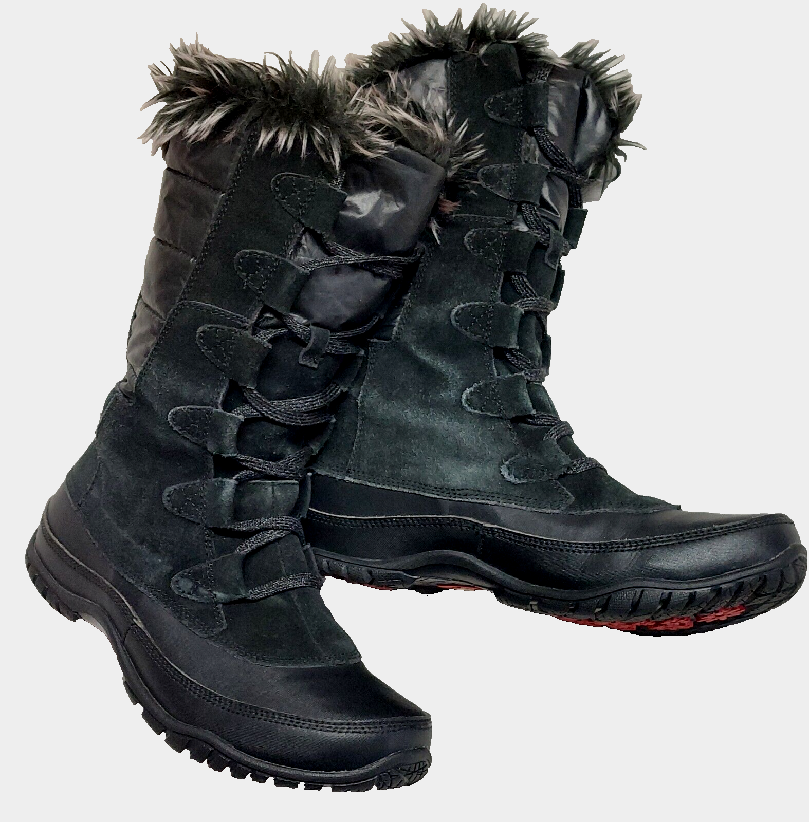 $ 45.14London Fog Black Suede Faux Fur Winter Boots Size 8 Excellent Condition