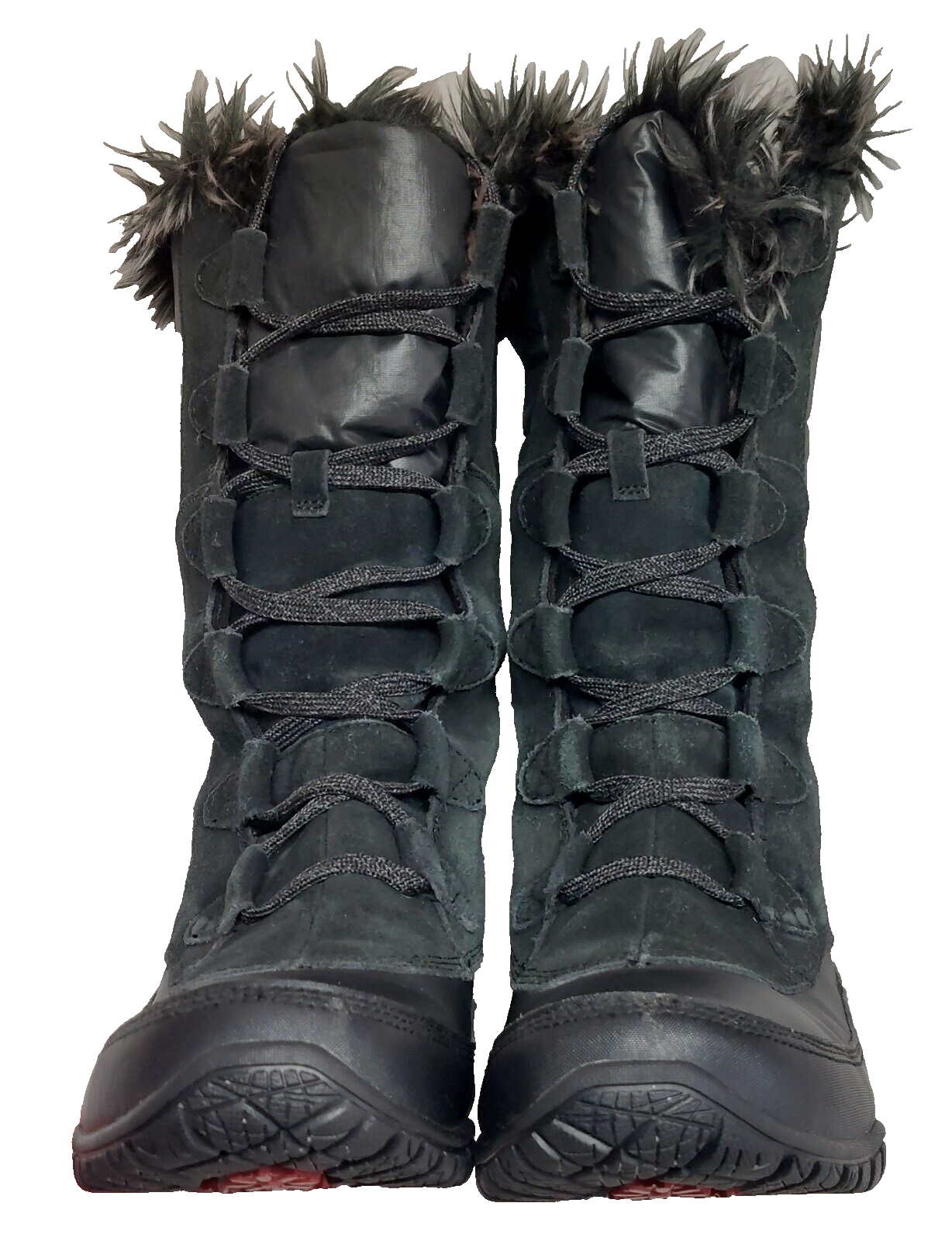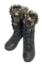 Women's The North Face Nuptse Purna Black Waterproof Boots Faux Fur Trim Size 7. Features Primaloft 200 Gram Insulation, full front lace-up closure, warm black microfleece interior with faux fur trim and rubber outsoles. Please note there are some creases and fading on the outside of the boots due to normal wear. There is a minimal wear on soles/treads. Well constructed and still a great pair of winter boots! Ships USPS Standard Mail.