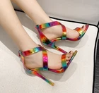 $ 15.05Womens Round Toes High Heels Cowhide Fish Mouth Metal Heel Sandals Plus Size