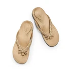 Good quality flip flop. Brand new in box. True to size and great price point. Love the arch support and bow and appearance is pretty.