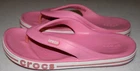 The product is a pair of Women's Pink Crocs Classic Flip Flops in size 8. These sandals feature a synthetic upper material and are designed by the brand Crocs. With a comfortable and iconic flip flop style, these sandals are perfect for casual wear during warm weather. The vibrant pink color adds a fun and stylish touch to any outfit.