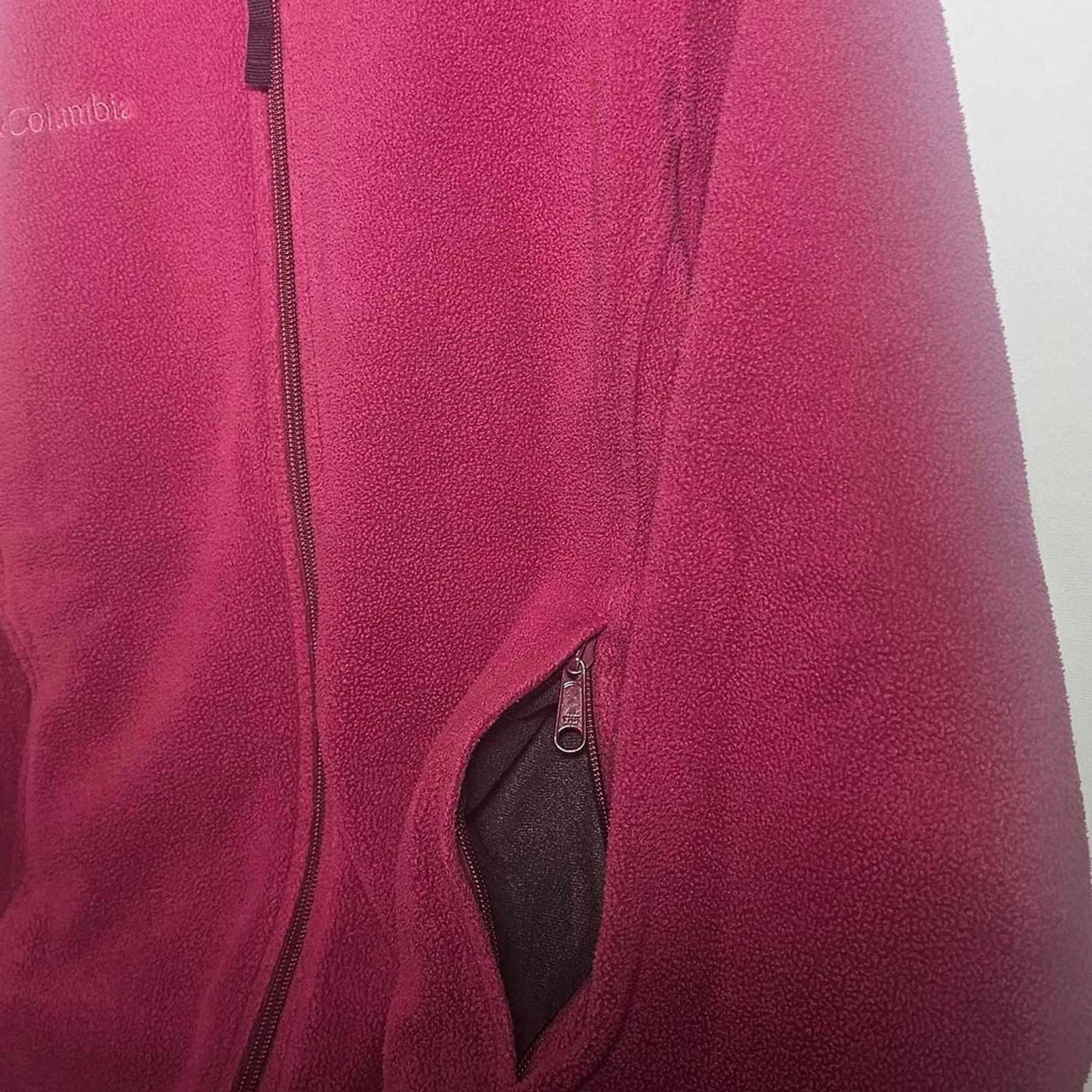 This Women's Pink Medium Columbia Long Sleeved Jacket is perfect for any outdoor activity or casual occasion. Made from a comfortable cotton blend fleece fabric, it features a full zip closure and pockets for added convenience. The jacket is accented with a zipper, embroidered logo, and a solid pink color that adds a pop of color to any outfit. The mid-length jacket is machine washable and has a classic fit, making it easy to wear and care for. Whether you're traveling or enjoying a day out, this jacket is a great addition to your wardrobe. So, go ahead and make a statement with this stylish and functional jacket from Columbia!