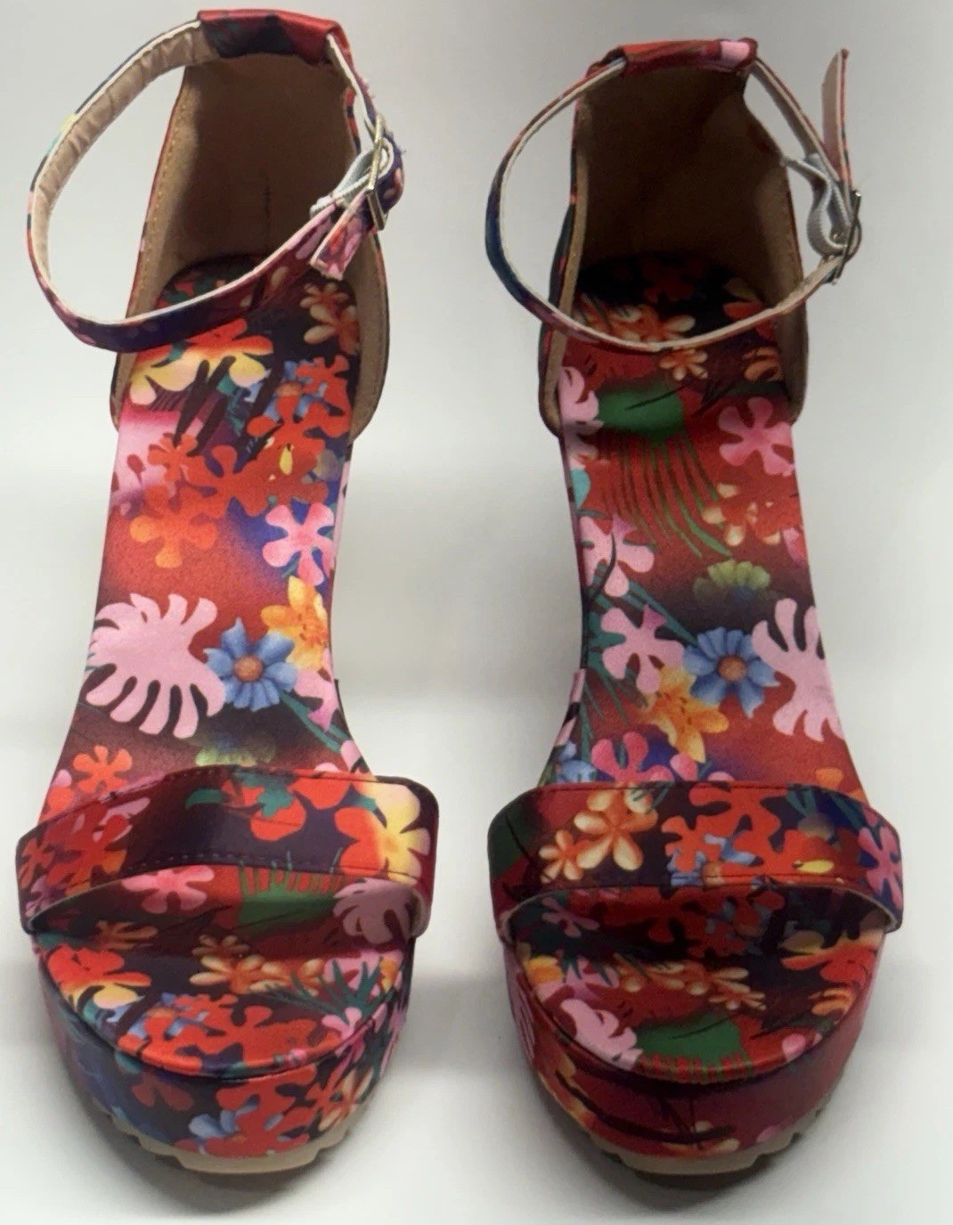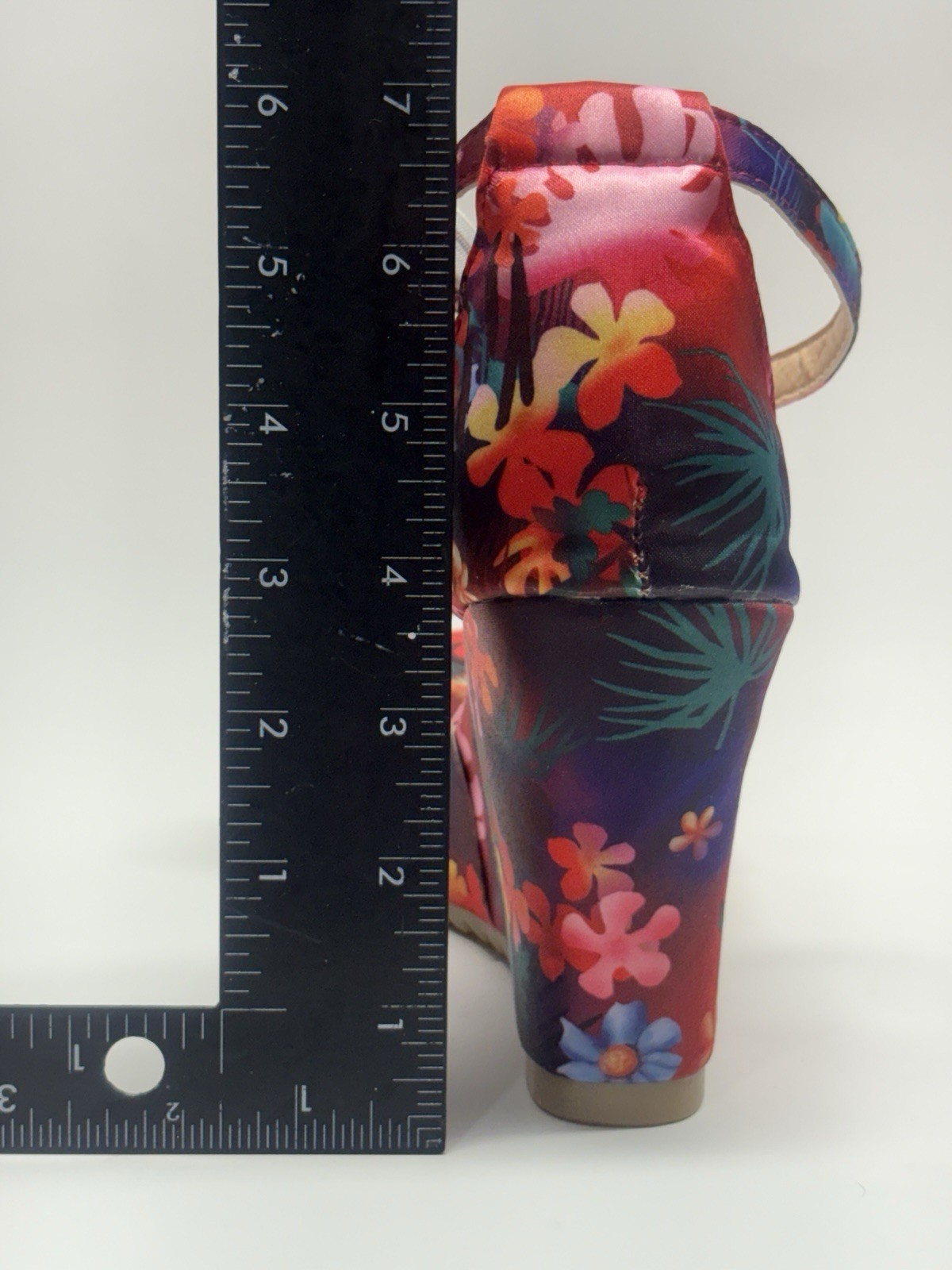 These Women's Platform Sandals are a stylish choice for casual occasions during the summer and spring seasons. The slip-on wedge design features a floral printed slingback, with a high heel measuring between 3-3.9 inches. The multicolor synthetic upper material and standard shoe width provide comfort and style, making them a fashionable addition to your footwear collection. Size 10 in both US and AU sizing ensures a comfortable fit for women looking for a trendy ankle strap sandal.