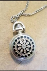This silver tone pocket watch necklace is in new condition. The pendant shape is round and the necklace length is 30 inches with a lobster closure. The pendant/locket type also has a place for a special photo. Operating Instructions: The watch opens by pressing down on the crown knob. Basic quartz pocket watches operate just like standard quartz wrist watches. To set the time, pull the crown all the way out (or second detent). Push the crown all the way back in to start the movement and begin normal time keeping.