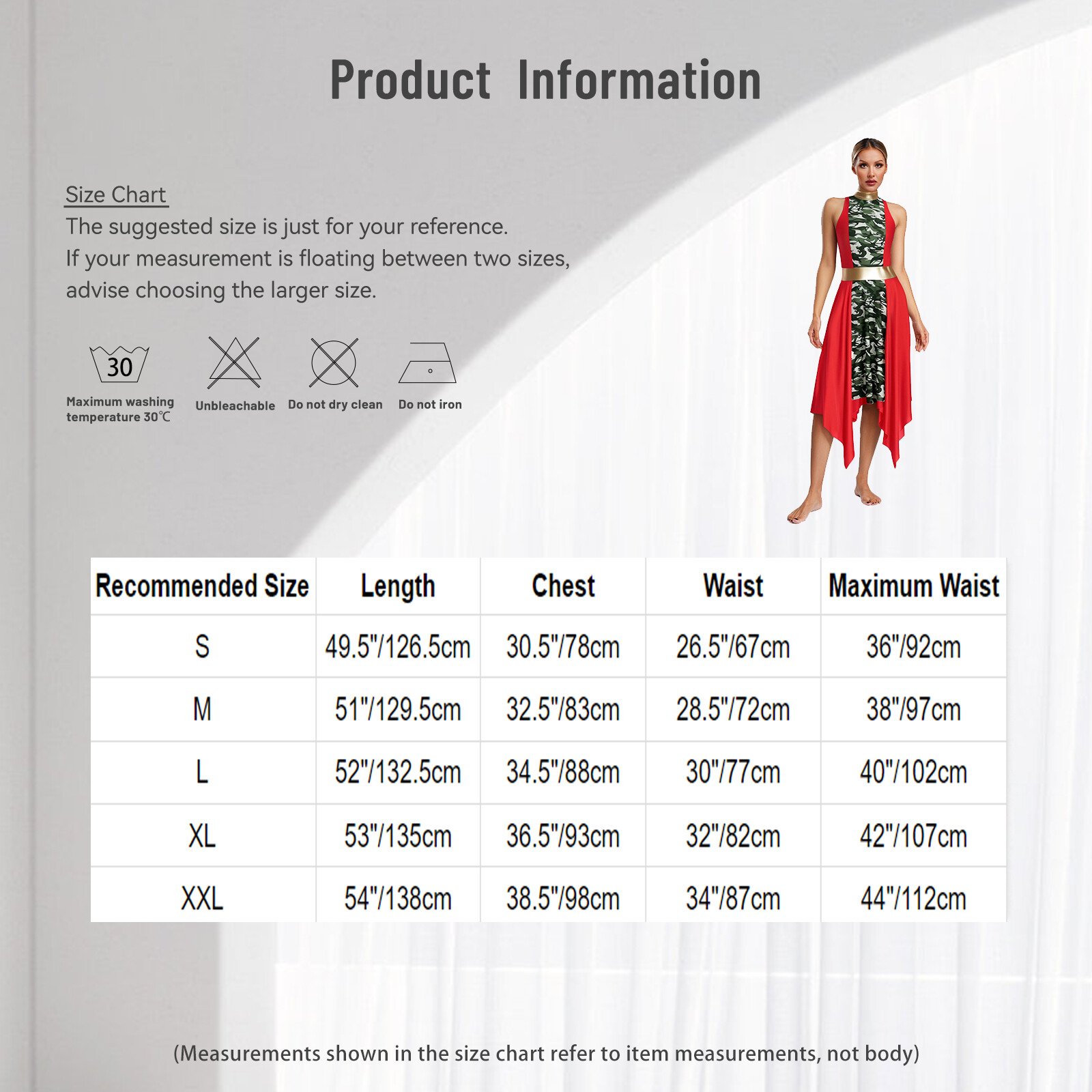 Click Here to New Arrivals New Arrivals Hot Sale Women's Dresses Women's Swimsuit Girls'Dresses Girls'Sleepwear Girls'Swimwear Boys'Clothing Baby Clothing Womens Praise Overlays Tunic Print Patchwork Irregular Hem Worship Lyrical Dress #1 Set Include : 1Pc Women’s Dance Dress Condition : New with tags Material : 90% Polyester, 10% Spandex Features: Crafted from polyester and spandex blend, this dress offers excellent stretch and comfort, ensuring freedom of movement during dance or other activities. The back hollow-out design adds a touch of allure and modernity, making it a trendy and fashionable choice. Print patchwork elements bring a unique and artistic look, setting this dress apart from ordinary and reflecting the latest fashion trends. The irregular hem design gives the dress a dynamic and stylish feel, adding a sense of movement and playfulness. Suitable for various occasions such as worship praise events, lyrical dance performances, or even as a unique and eye-catching outfit for a night out. Size Chart : The suggested size is just for your reference. If your measurement is floating between two sizes, advise choosing the larger size. (Measurements shown in the size chart refer to item measurements, not body) Tag No. Recommended Size Length Chest Waist Maximum Waist S S 49.5"/126.5cm 30.5"/78cm 26.5"/67cm 36"/92cm M M 51"/129.5cm 32.5"/83cm 28.5"/72cm 38"/97cm L L 52"/132.5cm 34.5"/88cm 30"/77cm 40"/102cm XL XL 53"/135cm 36.5"/93cm 32"/82cm 42"/107cm XXL XXL 54"/138cm 38.5"/98cm 34"/87cm 44"/112cm Friendly Tips: The size is measured by hands, please allow 1-3cm errors of measurement. Photo color might be a little different from the actual product due to color display of different monitors. #2 Set Include : 1Pc Dance Dress Condition : New without Tag Material : 95% Polyester, 5% Spandex Features : The bodice of the dance dress is designed with stylish prints and color block patchwork to make you the spotlight in any show. Metallic gloss fabric patchwork design at the left sleeve and waist highlights the waistline. Back invisible zipper allows for easy wearing. Two layers of skirt with color block and irregular design creates a flowy effect and show the beauty of dance. Made of premium fabric, breathable and soft, well-made and skin-friendly, keeping you comfortable all day long. Perfect for liturgical dance, praise dance, lyrical dance, worship dance, choir performance, Halloween, theme party and etc. Size Chart : The suggested size is just for your reference. If your measurement is floating between two sizes, advise choosing the larger size. (Measurements shown in the size chart refer to item measurements, not body) Tag No. Recommended Size Length(Shoulder to Hem) Chest Waist Shoulder Sleeve Length S S 51.5"/130.5cm 30.5"/78cm 25"/64.5cm 13.5"/35cm 22.5"/58cm M M 52.5"/133.5cm 32.5"/83cm 27"/69.5cm 14"/36.5cm 23"/59cm L L 53.5"/136.5cm 34.5"/88cm 29"/74.5cm 14.5"/37.5cm 23.5"/60cm XL XL 54.5"/139.5cm 36.5"/93cm 31"/79.5cm 15"/38.5cm 24"/61cm XXL XXL 56"/142cm 38.5"/98cm 33"/84.5cm 15.5"/40cm 24"/62cm Friendly Tips: The size is measured by hands, please allow 1-3cm errors of measurement. Photo color might be a little different from the actual product due to color display of different monitors. #3 Set Include : 1x Dance Dress Condition : New without tag Material : 90% Nylon, 10% Spandex Features : Made of soft fabric, breathable, skin-friendly, lightweight, comfy to touch and wear, makes you feeling well. Sleeveless dance dress for women, see-through design, draped neck and asymmetrical hem adds fashion element. The elastic band at the waist can be stretched to a wider range of waistline, easy to fit different body shapes. The flowy hem swing gently with the step to show the beauty of dance, the dress sparkles under the light to brighten up any performance. Suitable for choir, stage performance, dance class, dance party, prom, lyrical dance, modern dance, ballroom dance, etc. Size Chart : The suggested size is just for your reference. If your measurement is floating between two sizes, advise choosing the larger size. (Measurements shown in the size chart refer to item measurements, not body) Tag No. Recommended Size Back Length Chest Waist S S 25.5"/65cm 27.5"/70cm 24"/62cm M M 26"/66.5cm 29.5"/75cm 26"/67cm L L 27"/68.5cm 31.5"/80cm 28"/72cm XL XL 27.5"/70cm 33.5"/85cm 30"/77cm XXL XXL 28"/72cm 35"/90cm 32"/82cm Friendly Tips: The size is measured by hands, please allow 1-3cm errors of measurement. Photo color might be a little different from the actual product due to color display of different monitors. Product names are trademarks of the listed manufacturer or other owners, and are not trademarks of alwaysforbauhinia. The manufacturer does not necessarily endorse use of these products. Payment Methods Terms and Conditions Shipping Combined shipping is limited only to the items listed under this seller account : rakendw All the free shipping item don't offer discount. We REDUCE US$1.00 on shipping cost for each additional item. Please contact us to send you the update invoice once you finish your purchase. Please note that only the item in same currency can be combined.Please note that we do NOT offer shipping discount for bidding orders or item value less than $5.00 International Orders: The buyer is responsible for any applicable import duties and local taxes. Please verify with your customs before making your purchase. Please verify your address during checkout. We are not responsible for any wrong or undeliverable addresses. Your item will be sent to your ebay address. Please make sure your ebay address is correct. Any non- received items caused by invalid address are not in our full refund or replacement policy. All items will be shipped within 1 business day after full payment is received. It takes about 10-20 days to US UK AU DE; about 20-35 days to other countries.Shipping may influenced by holidays, events and other uncertainties. We could not guarantee the arrival tim
