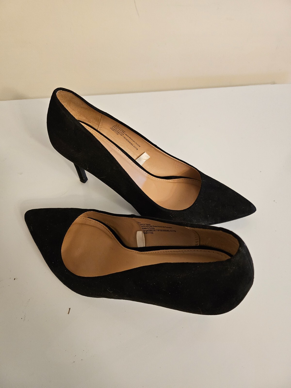 Elevate your footwear collection with these sophisticated black pumps, a must-have for any fashion-conscious wardrobe. The sleek faux suede material and classic pointed toe design convey a sense of elegance, making them ideal for a range of occasions from business meetings to evening events. Their 3 to 3.9-inch stiletto heels add a touch of glamour and provide a comfortable fit for sizes up to 9.5.Crafted for versatility, these heels offer a timeless appeal with their solid pattern and slip-on closure, ensuring a seamless blend of style and practicality. They are perfectly suited for any season, whether paired with a crisp suit in the spring or fall, or dressed up for a winter wedding or summer soirée. Step out in confidence with these chic and sophisticated women's heels.