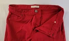 These red jeggings by Active USA are a stylish and comfortable choice for women in size Large. Made with a stretch fabric blend of nylon, spandex, and rayon, they feature a low-rise with a 25-inch inseam. The jeggings have a zip and button closure, along with a 5-pocket design accented with real and false pockets (front pockets are fake, coin pocket is real, rear pockets are real). Perfect for the summer, fall, and spring seasons, these slim-fit jeggings are ideal for those looking for a blend of style and comfort in their wardrobe.