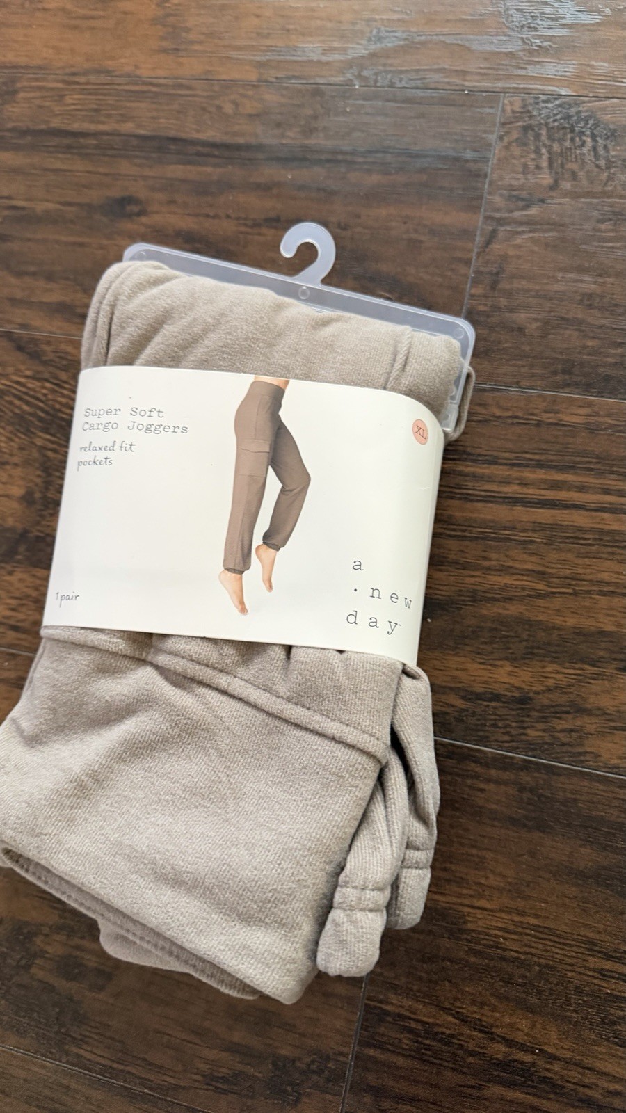 Women's Relaxed Fit Super Soft Cargo Joggers - A New Day Walnut Brown XL. Condition is New with tags. Shipped with USPS Ground Advantage.