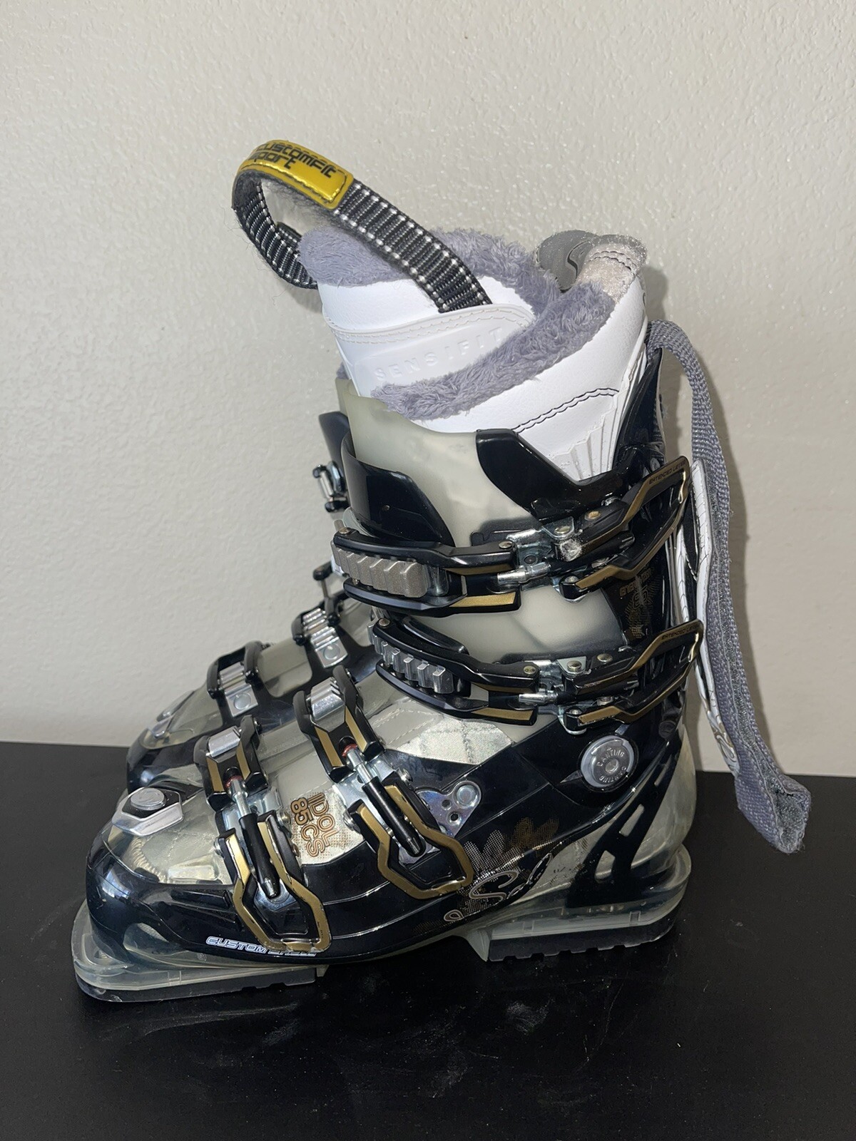 These Women’s Salomon Idol 85CS Ski Boots are perfect for intermediate level skiers who enjoy alpine and downhill activities. They come in a size 25.5 and feature a medium flex for maximum support. The boots are specifically designed for women and are made by the popular brand Salomon. These ski boots are pre-owned, but have been well-maintained and are in great condition.