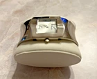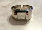 This beautiful women's wristwatch is a vintage piece from Japan with a silver quartz movement. It features a hinge closure and a wavy silver band/strap that complements the silver case color. The watch is analog and does not come with original box/packaging or papers. Perfect for accessories collectors and vintage watch enthusiasts, this piece is a great addition to any jewelry collection. Its classic design and vintage charm make it a versatile accessory that can be worn with any outfit. Get your hands on this unique silver cuff watch bracelet now! Works great just needs new battery.