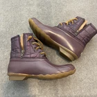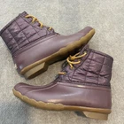 Sperry Boots Womens Size 8 Brown Quilted Waterproof Duck Winter STS80754 Zip Up Condition: Good used condition. Light general wear. Small flaw on outside midsole edge (see closeup photo). No major stains or structural damage. Soles show minor normal use. Model: STS80754 Tagged size: Womens 8 Medium Color: Brown (two-tone with quilted upper and waterproof rubber lower shell) Lace-up front with side zipper for easy on/off Insulated, soft fleece lining for added warmth Durable non-slip rubber outsole for traction in wet conditions All visible Sperry branding present on tongue, heel, and insole Material: Waterproof rubber lower, quilted synthetic textile upper, faux fleece lining Great for rain, snow, and winter outdoor activities. Please review photos for details and flaw.