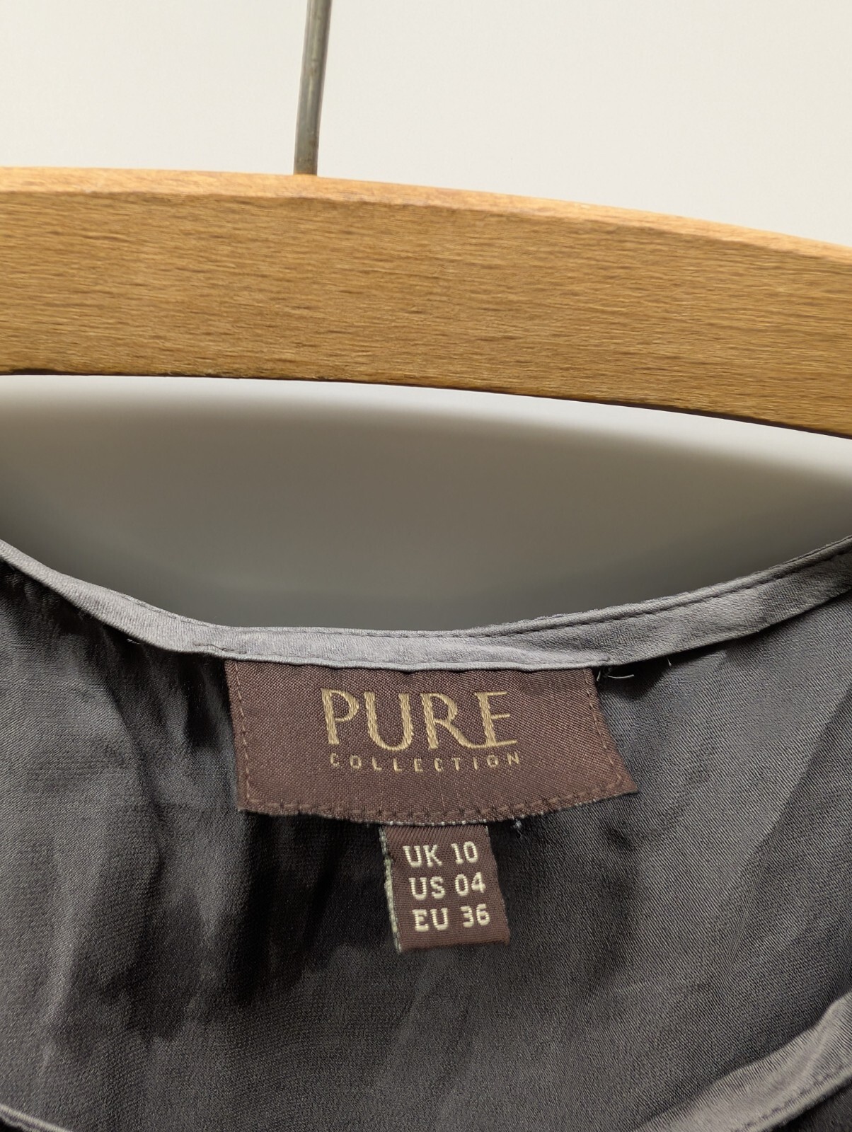 The Pure Top women's silver silk blouse in size 8 is a stylish and elegant choice for the summer season. This sleeveless blouse features embroidered accents, adding a touch of sophistication to your wardrobe. The luxurious silk material ensures a comfortable and breathable feel, making it perfect for warmer weather. The silver colour adds a chic and contemporary touch, making this blouse a versatile piece that can be dressed up or down for any occasion.