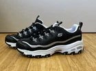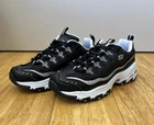 Women's Skechers D Lites - Now & Then Running Shoes - Black/White/Silver - Style 11923-BKSL * Style Code: 11923-BKSL * Colour: Black/White/Silver * Condition: Excellent Condition (Slight Discolouration on Sole of Shoe) * Material: Leather and Synthetic Upper * Features: * Air-Cooled Memory Foam insole for superior comfort * Lightweight, shock-absorbing midsole * Durable rubber outsole for excellent traction * Design: Retro-inspired silhouette with bold color blocking in black, white, and silver. Classic D'Lites styling. * Ideal For: Running, Walking, Casual Wear, Everyday Style * Australian Owned & Operated * Fast & Free Shipping Australia-Wide