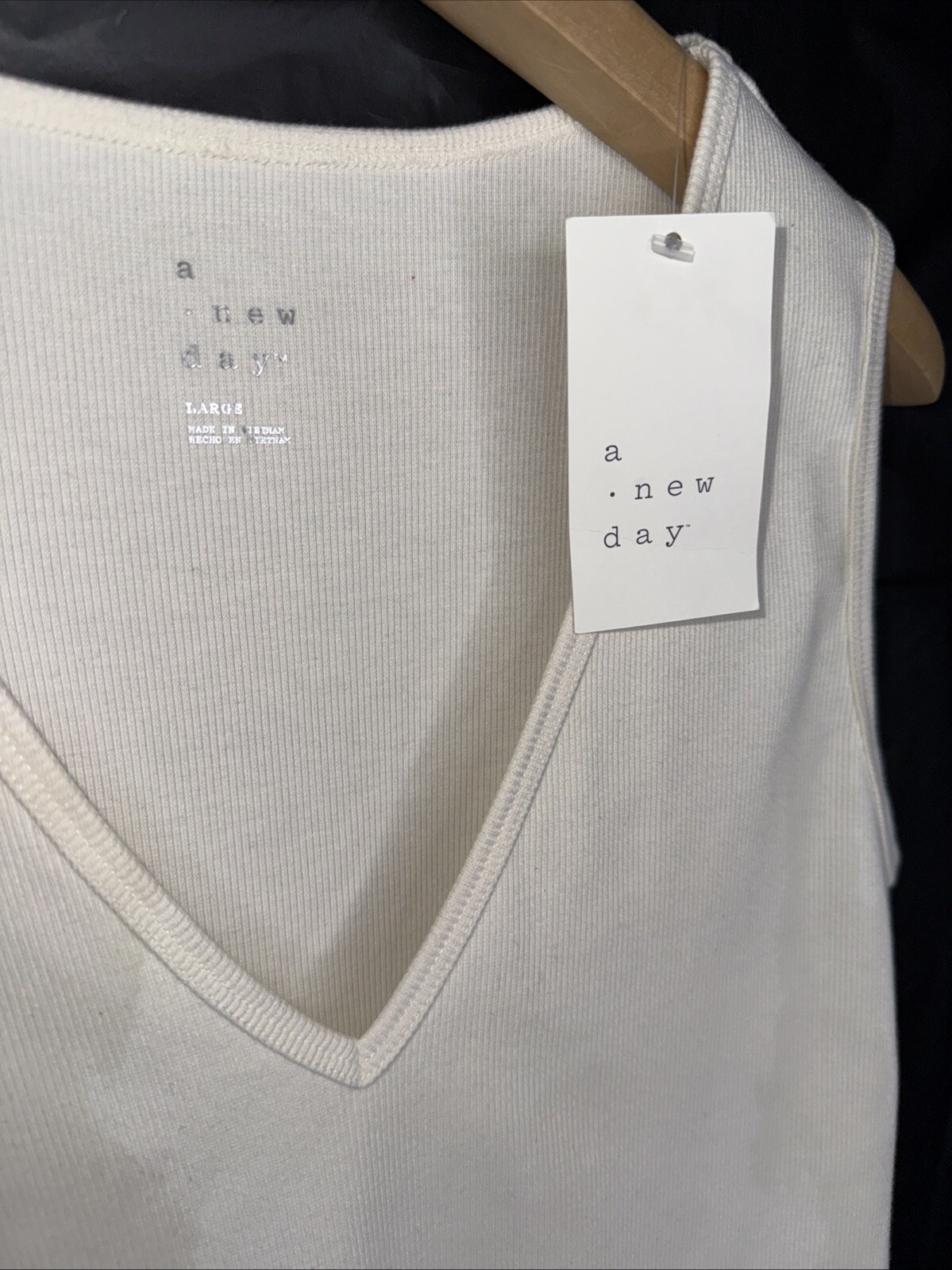 Elevate your wardrobe with the A New Day Women's Sleeveless V Neck Snap Closure Bodysuit. This versatile piece is perfect for any occasion, whether you're dressing up for work or keeping it casual for a day out. The ribbed knit fabric provides a comfortable fit that moves with you, while the snap closure adds a touch of sophistication to the overall design. Crafted from a soft blend of cotton and polyester, this tank top is machine washable for easy care. The timeless white color and classic V-neckline make it a staple piece for any season. Pair it with your favorite jeans or skirt to complete the look.