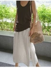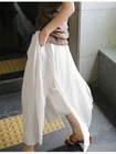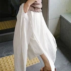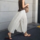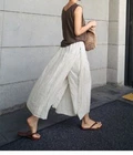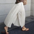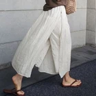Womens Spring Summer Loose Casual Cropped Pants Linen Wide-leg Slit Trousers