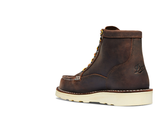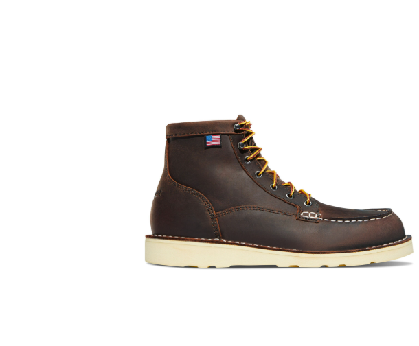 Full-grain leather 6" lace-up shaft Moc steel toe Steel shank Cushioned footbed ASTM F2413 electrical hazard/protective toe standard Oil and slip resisting, non-marking rubber outsole Wedge bottom Made in USA with global parts Style: 15576