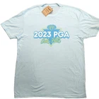 2023 PGA Oak Hill Women's T-Shirt L Light Teal Large Short Sleeve Golf Tee Pittsford New York MSRP: $38 Size: Women L (Large) Fabric: 60% Cotton / 40% Polyester Chest: 20.5 inches Length: 28.5 inches Tag says "Teal" for the color. It is a light shade of blue/teal. Please check out our other golf related apparel available in our store. Feel free to reach out if you have any question.