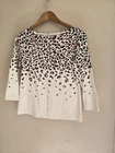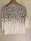 Women's Talbots Pink Leppard Crewneck Pullover Blouse 3/4 Sleeve Size Small