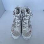 Please see images for some slight wear and tear. The Women's Tanjun High Rise High Top Sneaker Boots from Finish Line in size 12 are stylish and comfortable Nike boots designed for women. The beige color and high top design make them versatile for various outfits and occasions. Made with synthetic material, these boots are durable and easy to maintain. With a high rise design and a trendy bootie style, these Nike Tanjun boots are a fashionable choice for any wardrobe. Cog15b6