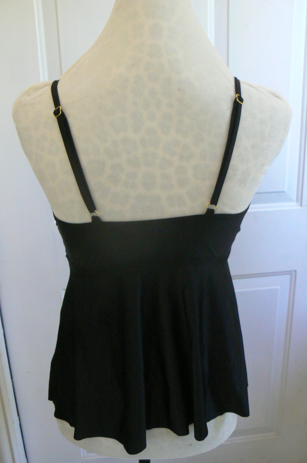 This listing is for a like-new black swim top from Time and Tru. It is a size medium (8-10) and has a lot of fun straps -- all adjustable. It is a loose, non-fitted top that will go with just about any bottoms you may have. Please note: My camera's lens is scratched, so it makes some items (particularly solid, dark colors) appear to have a faded place on them. This does not have any faded places or defects. This will be shipped quickly by ground advantage mail. I have MANY other items and I'm always happy to combine shipping where possible. I normally mail ON the day I receive payment if it's received before 1 p.m. central time, and the next day if it's later than 1. Please take a look at my other listings; I'm listing many school books (and other items) and am happy to combine shipping! Items from smoke-free, pet-free home. Thanks so much for your time!