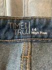 This product is a pair of Women's Time and Tru Relaxed High Rise Shorts in size 14, featuring a distressed look. The brand is Time and Tru, known for its comfortable and casual clothing for women. The fit is described as relaxed, offering a comfortable and easy-to-wear style. Perfect for casual days and relaxed outings. All measurements are approximate with item resting. Waist 17.5” Inseam 3.5” The item is thoroughly washed/cleaned as per the manufacturer's guidelines before shipment. See my other listings for more stuff you didn’t know you needed.