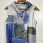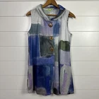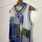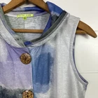 Women's Trisha Tyler Vest sz Medium -Color: Multi-colored pattern -Large wooden button front closure -Sleeveless -Fold over collar -Tunic length -Lightweight, stretch material -100% polyester Flat Measurements: 19.5" Bust plus stretch 30" Length I take very good care of my items in my smoke free home! If you have any questions, please contact me and I will be more than happy to answer! Please check out my other listings and Thanks for looking!