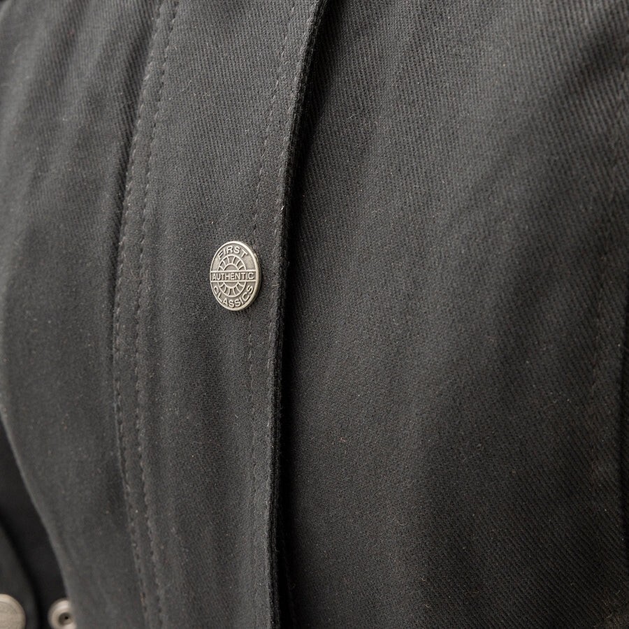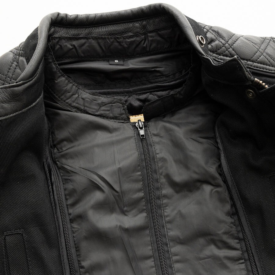Diamond Back – Women's Motorcycle Jacket Style: FIL119TWILL-BLK Material: Durable Twill with Premium Leather Details Fit: Tailored Fit for Comfort & Mobility Description: This women’s moto jacket combines comfort and show-stopping detail. The body is crafted from soft yet durable twill with diamond-stitched leather accents on the shoulders and lower back for a unique texture and extra durability. A perfect layering piece for all seasons that blends rugged biker design with a polished, modern edge. Key Features: Twill body with diamond-stitched leather details Center zipper front with a stylish banded collar Rain Shield removable liner Two zippered hand pockets Gusseted zippered sleeves for easy movement Forearm key pocket, elbow stretch panels, bicep adjustment Action back for riding comfort Interior and quick-access conceal carry pockets Armor pockets at the center back, shoulder & elbows (CE Level 2 compatible) Available Sizes: XS, S, M, L, XL, XXL, 3XL, 4XL, 5XL Note: Please check the size chart on the product page before ordering to ensure a perfect fit. women's motorcycle jacket, biker jacket for ladies, twill jacket, diamond stitch moto jacket, black motorcycle jacket women, leather trimmed biker jacket , riding gear for women, ladies moto wear, cafe racer jacket for women Women's Motorcycle Jacket, Biker Leather Jacket, Retro Moto Jacket, Popstar Jacket, Cowhide Biker Jacket, Ladies Riding Gear, First MFG Women's Jacket, Asymmetrical Moto Jacket, Stylish Motorcycle Jacket Women, Black Leather Jacket, Oxblood Leather Jacket