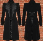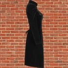 The Women's Vespertine Long Coat in Black is a luxurious and stylish outerwear piece perfect for the colder seasons of winter and fall. Made from velvet with a polyester lining, this coat features a button closure, long sleeves, and a solid pattern. The embroidered accents and vintage design add a touch of elegance, making it suitable for both party occasions and casual wear. With a regular fit and handmade craftsmanship, this coat is a unique and fashionable addition to any woman's wardrobe. Ship from USA.