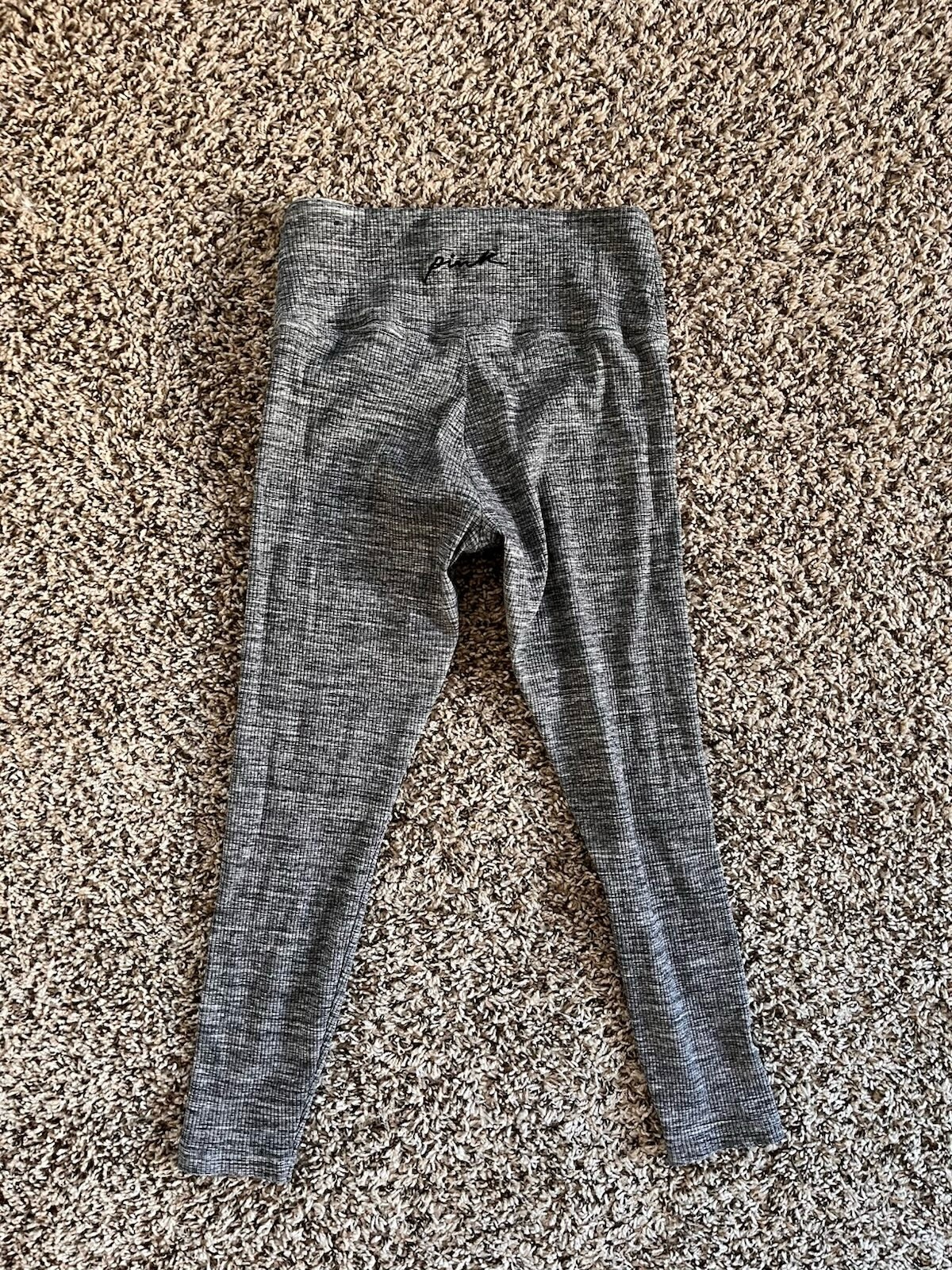 These women's Victoria's Secret Pink Grey Yoga Ribbed Leggings in size Large are perfect for active women looking for comfortable and stylish leggings. Made of polyester with a blended fabric type, these leggings feature a pull-on closure and a compression area for the legs. The athletic fit and skinny leg style make them ideal for yoga and other active pursuits. Machine washable for easy care, these leggings are versatile and can be worn in any season. Perfect for adding a touch of sporty chic to your activewear collection.