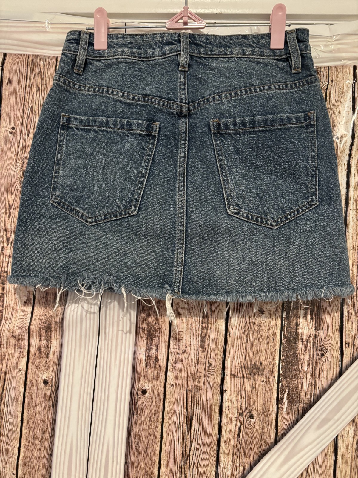 Womens We the Free sz 25 jean mini skirt #321. This skirt has two front and two back pockets. It zips all the way up in the front. It has a raw hem.