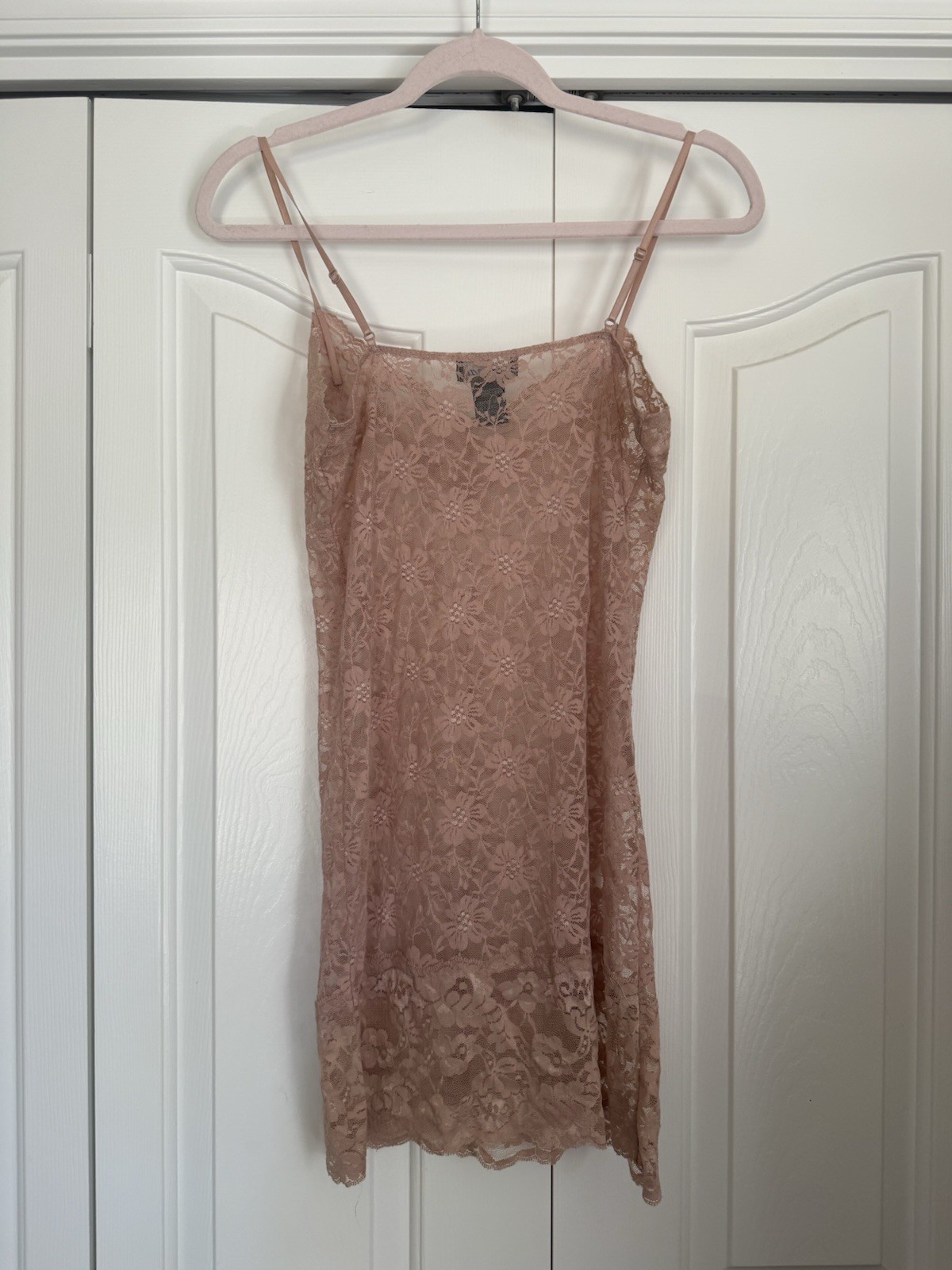 Super cute wet seal slip dress. See through. Tan. Size large.