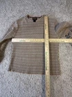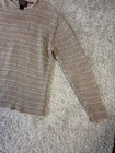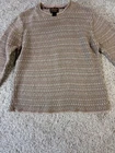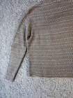 This Women's Woolrich Khaki Knit Long Sleeve Sweater in size Medium is a stylish and cozy addition to any winter wardrobe. The sweater features a classic crew neck and a cable-knit pattern, perfect for a comfortable and fashionable look. Made from a blend of cotton and wool, this sweater is designed to be hand washed only to maintain its quality. The neutral beige color and geometric pattern make it versatile for both casual and more formal occasions. Made by the reputable brand Woolrich, this sweater is sure to become a staple in any woman's wardrobe. 3933