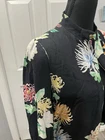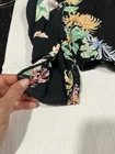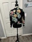 The Women’s Zara Basic Collection Floral Print Short Jacket in Size XS features a vibrant multicolored floral pattern, perfect for adding a touch of tropical style to your summer, fall, or spring wardrobe. Made from viscose material with a zipper closure, this long sleeve jacket is versatile for travel, parties, or casual outings. The elastic hem and scrunch sleeves add a trendy twist to this basic jacket from the popular brand Zara, making it a must-have for any fashion-forward woman.