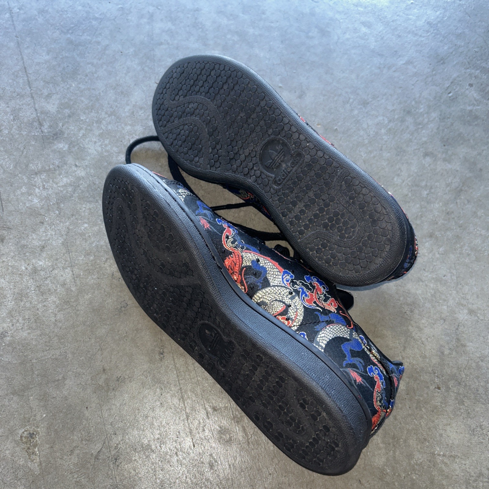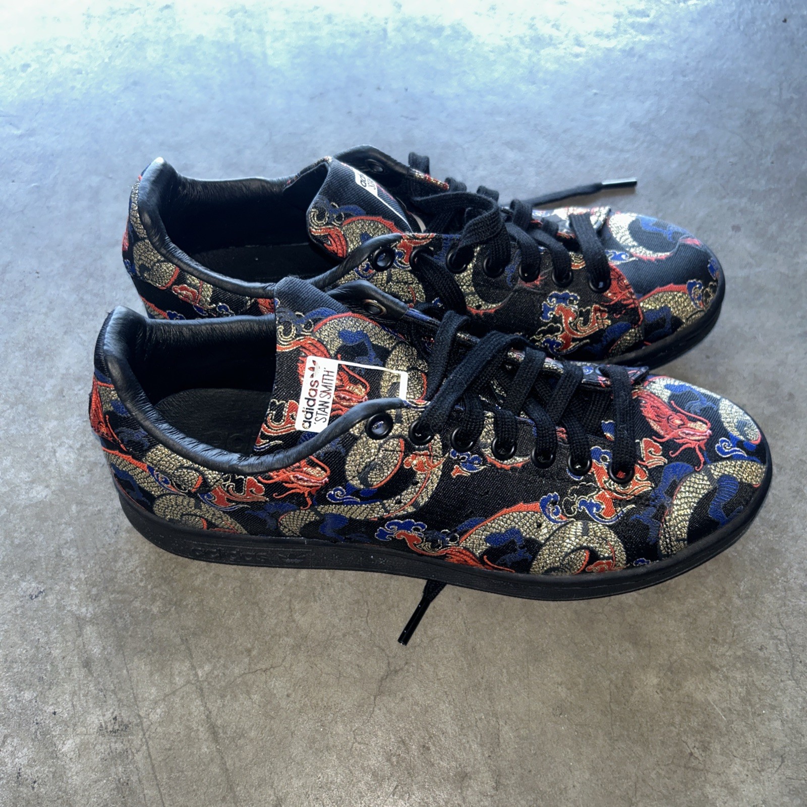 The Size 6 Women's adidas Stan Smith Dragon Boat Festival sneaker is a stylish and athletic shoe designed for both men and women. Released in 2020, this black sneaker with a textile upper features a dragon boat festival theme, making it a unique and eye-catching choice for those looking to make a statement. With a focus on quality and performance, this adidas Stan Smith model is sure to provide comfort and style for any athletic activity or casual wear. Worn very few times an amazing precondition.