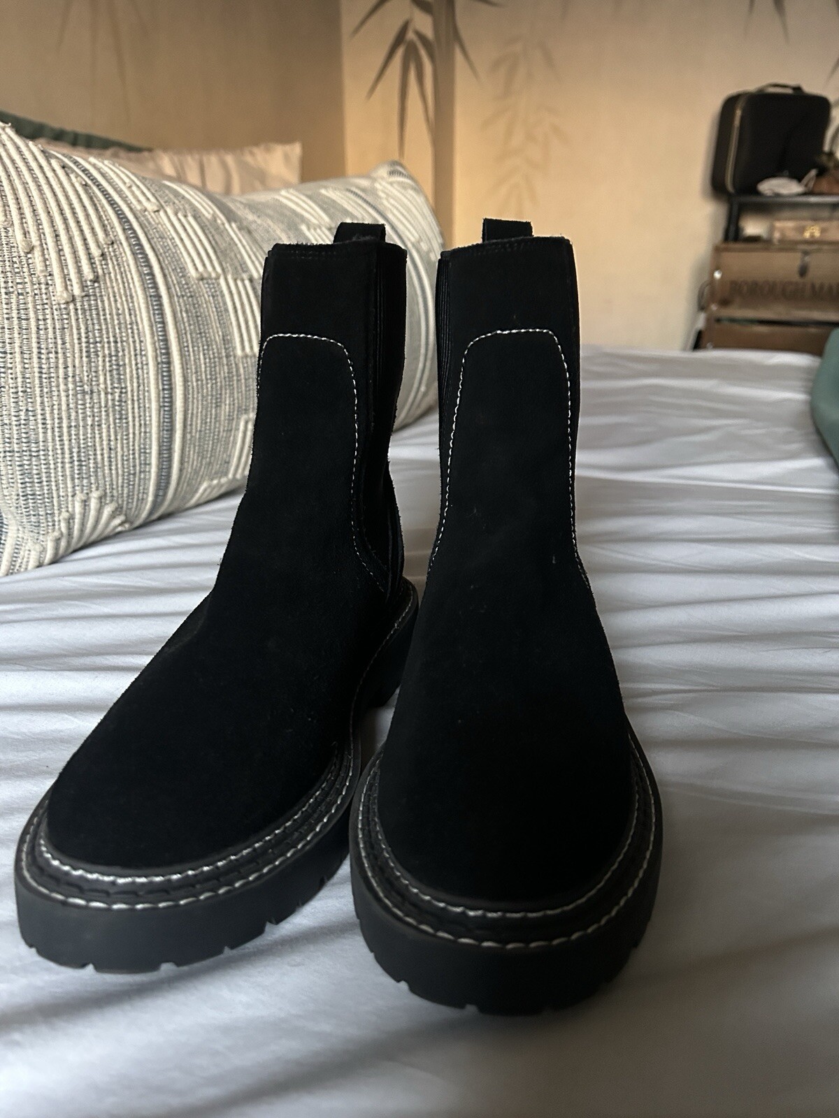 Beautiful pair of river island black suede ankle boots only worn once, ended up being too big for me