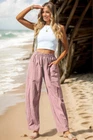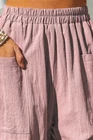 Women's pink cotton and linen casual pants holiday wind elastic waist cargo bag